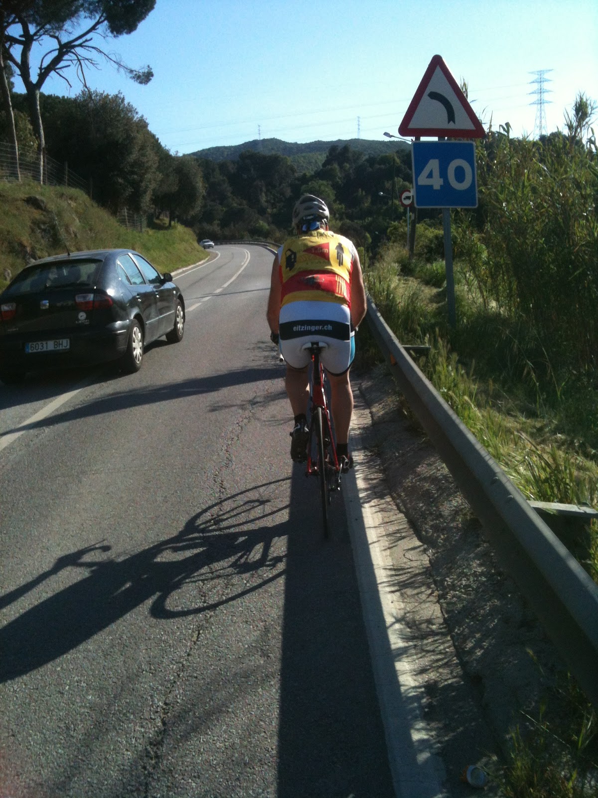 Estrenamos los chalecos 1.5m Respect con gran éxito. Los vehículos nos respetaron en hora de bastante trafico. Recorrimos la carretera de La Roca y la Conrrería por los dos lados, los vehículos nos adelantaron cambiando de carril a velocidad reducida.